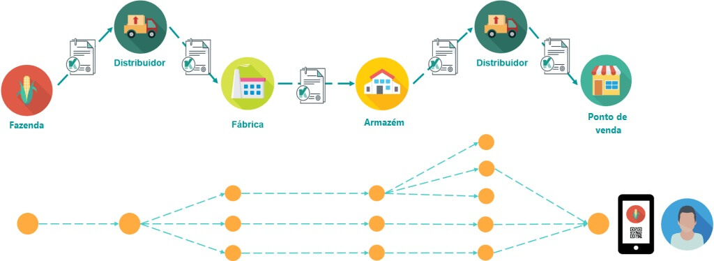 O sistema blockchain permite ao usuário seguir o rastro de um alimento durante todas as etapas da cadeia produtiva, de forma que sejam alcançados níveis máximos de segurança alimentar.