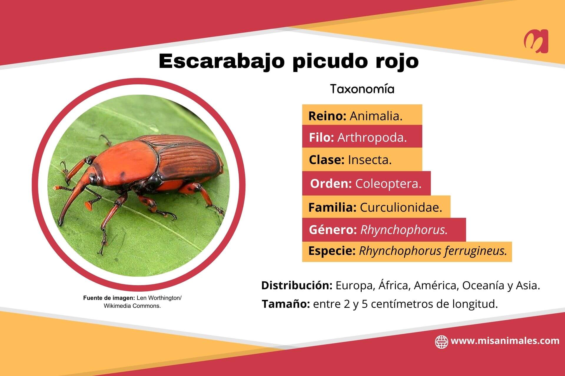 O escaravelho-vermelho é um inseto conhecido por infectar palmeiras economicamente importantes. Por esse motivo, é considerado uma praga de risco para determinadas culturas. Apesar de seu tamanho, é um parasita voraz capaz de enfraquecer seu hospedeiro e se espalhar rapidamente. De fato, essa praga conseguiu chegar a outros países onde não se distribuía naturalmente.