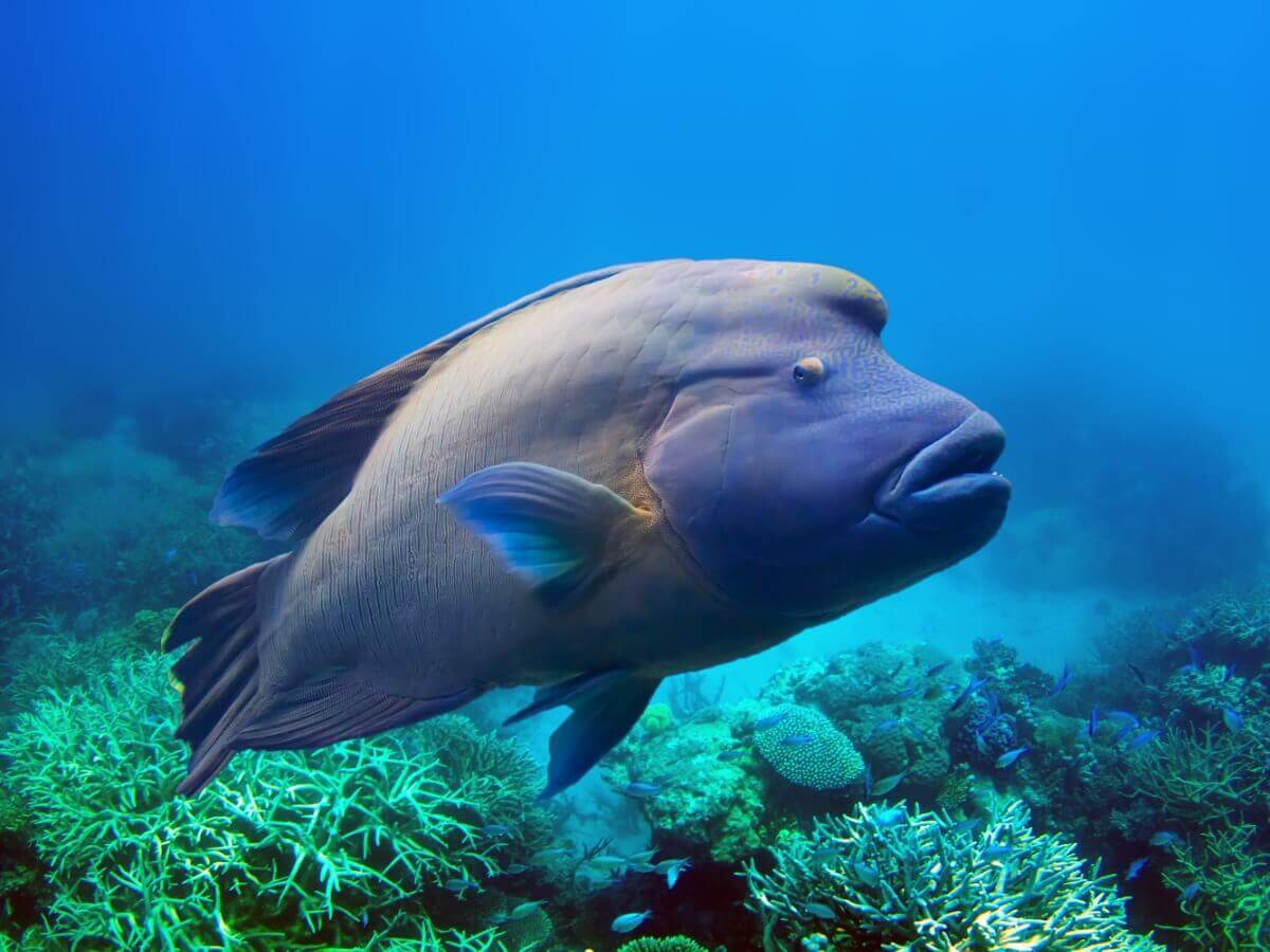 O peixe-napoleão também exibe cores particulares na juventude. Nessa fase, pode apresentar escamas avermelhadas, alaranjadas ou esverdeadas.