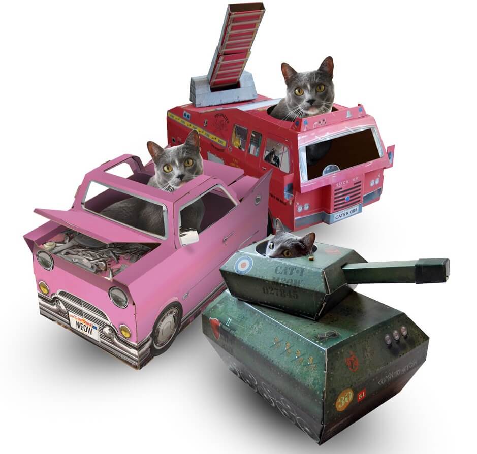 Mas, além da ideia que cada um tenha sobre brinquedos ou objetos para gatos, a verdade é que se trata de um produto engenhoso e de uma novidade que vale a pena mostrar. Os “abrigos” para felinos assumem diversas formas, são fabricados de papelão e vem acompanhados de um manual de instruções sobre como montá-los em casa.