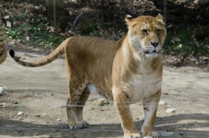 Outra peculiaridade da sua aparência física é a juba, no caso dos machos, menos frondosa do que nos leões, com patas longas e uma cauda que os faz parecer mais frágeis do que os pais. Mas o que mais chama a atenção é sua corpulência e sua musculatura, já que estão longe dos 250 quilos que um leão adulto macho pode pesar ou dos 350 quilos de um tigre.